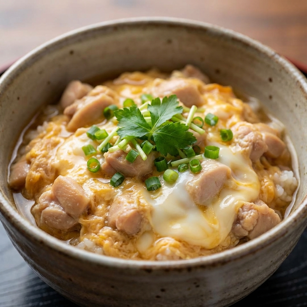 The cooking liquid – dashi, soy sauce, mirin, and sometimes sake – is the soul of oyako don. It seasons the chicken during cooking, then mingles with the egg and soaks into the rice below. Getting the balance right – sweet enough to be comforting, savory enough to be satisfying – is the mark of a skilled cook.